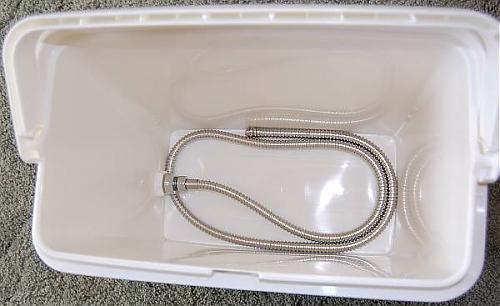 Atutem jest cena, bo za za swój wąż zapłaciłem 9zł (1,5 metrowy, Tesco). Trochę problematyczne jest zasklepienie drugiej strony, bo ucięty wąż lubi się rozwijać. Ja nawinąłem kilka zwojów drutu miedzianego o średnicy 1mm, pozaginałem go tak, żeby zasłonić otwór i zalutowałem. Ta wersja wymaga przejściówki, aby dokręcić koniec węża do kranika. Wąż prysznicowy jest zazwyczaj długi (1,5 - 1,7m). Ja go nie ciąłem i tak chyba zostanie. Dużo łatwiejsze jest wyciągnięcie wewnętrznej gumowej rurki, która jest tutaj dość cienka (mimo, że nie możemy "podziabać" końca węża jakimś szpikulcem. Ja użyłem rozgrzanego zagiętego drutu miedzianego, który poprzecinał gumową rurkę przy końcu.