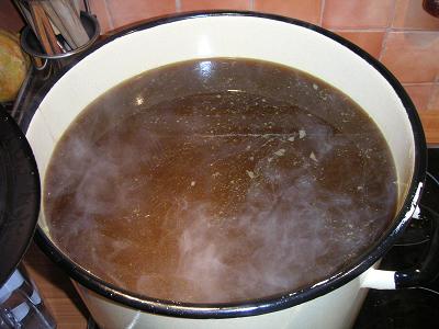 Potem dodać chmielu (40g goryczkowego w granulkach) i godzinka gotowania