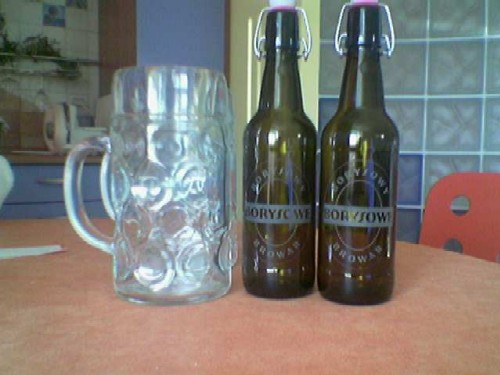Po niecałych 2 tygodniach od zabutelkowania warka 8 (Bitter) nagazowana jak należy. Niech żyją Safale! Na dnie malutki osad drożdżowy, prawie nie mąci piwa. Niestety problemem moich piw jest zmętnienie na zimno, poniżej 10-12 st. C. Można to podobno ograniczyć stosując przerwę białkową (50 st. C) tylko ryzykuje się utratą piany na piwie. Sam nie wiem, ale chyba jednak wolę piankę