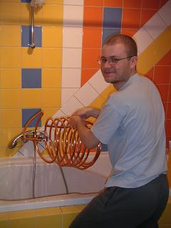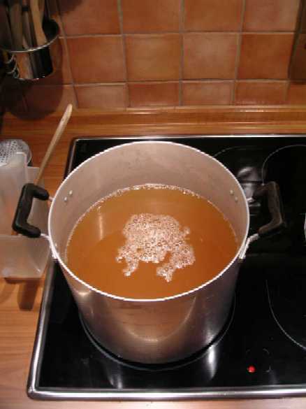 Natychmiast zrodził się plan własnej produkcji. Sprzęt nabyłem we wtorek a w czwartek warzyłem już Bavarian Lagera z ekstraktu J Bulla. Już wtedy wiedziałem że na tym nie poprzestanę. Pierwsza degustacja po tygodniu od zabutelkowania - no cóż, mieszane uczucia. Piwo "wyszło" z butli. Smak niezły ale bez rewelki. Jednak już 13 II kolejna degustacja wypadła pomyślnie. Dla porównania skonsumowałem nastepnie Heinekena i miałem wrażenie, że piję wodę.