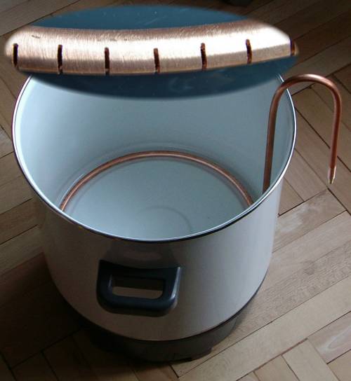 Filtracja - po raz pierwszy zastosowałem wkład filtrujący równie prosty i nieskomlikowany jak receptura na to piwo. Kwałek rurki miedzianej 10/8 mm wygięty i nacięty.
