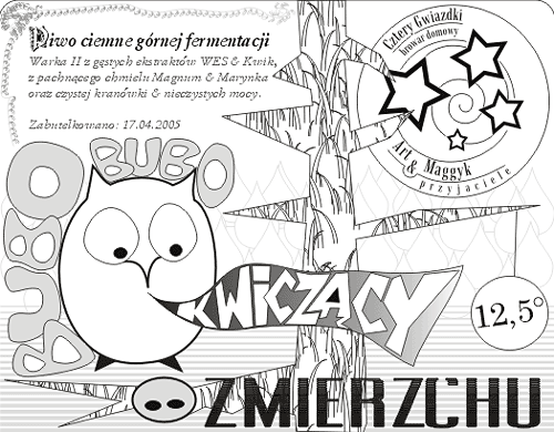 - sporo owocowości z lekkim kawowo-karmelkowym finiszem. ciemny ekstrakt słodowy sprawił że barwa to nieprzenikliwa czerń ale w smaku tylko bardzo delikatnie zaakcentowane nutki. czyli słód mieliśmy na szczęście nie barwiący jak się Naczelnik obawiał a po prostu ciemny. musi jeszcze poleżeć w piwnicy. zobaczym co na warsztatach będzie.