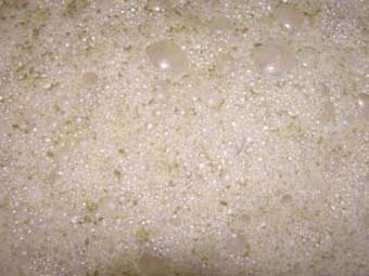 Ładnie fermentuje, a ja z góry zbieram sobie drożdżyki. Załączam foto, aby ktoś tu mi potwierdził, że to, co pływa po wierzchu, to są właśnie rozmnożone drożdże, a ja nie zbieram do słoika jakiegoś badziewia.