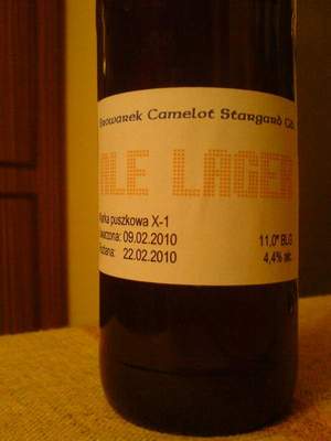 Na poczekaniu (w 10 minut) w Wordzie wymyśliłem etykietę. Kolorów mało, bo tusz w drukarce się kończy. Akurat barwy wyszły na fotce przekłamane, więc u góry napis na niebiesko, nazwa piwa na pomarańczowo, dane techniczne - na czarno. Etykieta jest faktycznie biała.