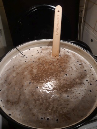 Wyszło mi tylko 21l, ekstrakt 4,5BLG. Zadałem odłożonymi tydzień temu drożdżami po porterze w temp. 19*C.Browar Bociana smaczny od rana