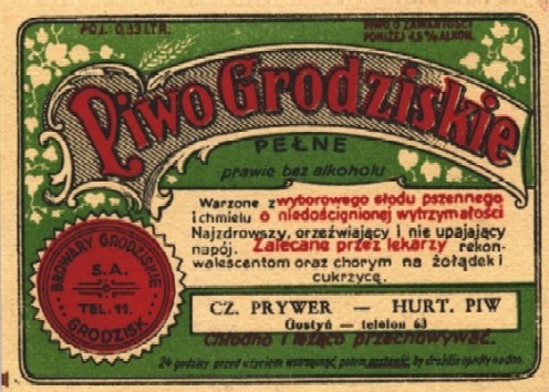 Oryginalna etykieta przedwojennego Grodzisza. Niestety pozostały jedynie etykiety, podstawki, reklamy, butelki.....i nieczynny browar