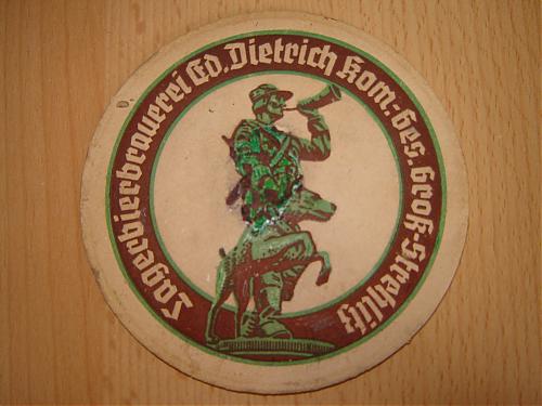 "Dwie duże porcelanki (średnica 43 mm) z gąsiorków z browaru ze Strzelc Opolskich. Napis na porcelance: Własność Browaru Parowego J.Steinitz´a - Gross Strehlitz. Porcelanki różnią się krojem czcionek i ozdobnikami. Mała porcelanka z Braniewa umieszczona tylko dla pokazania różnicy wielkości."