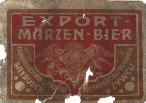 Etykieta głównego gatunku piwa warzonego w Żywcu w czasie okupacji. Rozlew browaru.