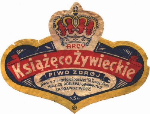 Kilka lat temu udało mi się zdobyć do kolekcji ciekawą, przedwojenną etykietę z Żywca. Została ona znaleziona przez znajomego na strychu w browarze. W pierwszej chwili gdy mi ją pokazał sądziłem, że mam do czynienia z etykietą tyską ale po dokładnym obejrzeniu nie było żadnych wątpliwości, że chodzi o etykietę z Arcyksiążęcego Browaru w Żywcu. Wzór jest niemal identyczny z wzorami przedwojennych etykiet tyskich. Pozostaje pytanie kto był pierwszy - Żywiec czy Tychy. Wiem, że Tychy dość późno zaczęły etykietować butelki (lat 20/30-te XX wieku?!) co może świadczyć o korzeniach żywieckich tego wzoru ale z drugiej strony nie jest znana kontynuacja graficzna tej etykiety w Żywcu.