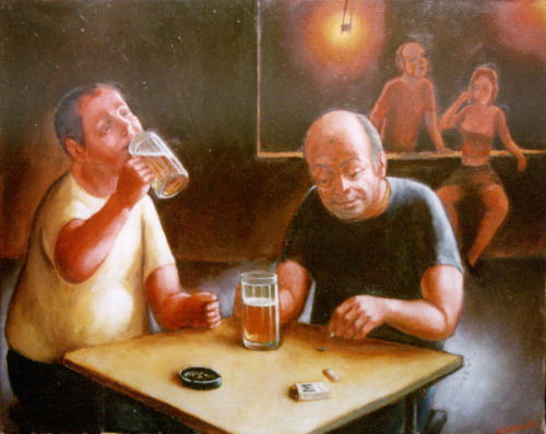 jak wam się podobają menele, namalowane przez Witka Sadowskiego? Ta butelka to z piwem jest !!!