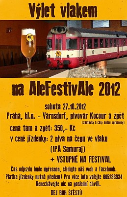 Tak to je docela pecka. 27. října se koná v pivovaru Kocour tzv. Fetivale Ale, zkrátka festival ejlů, ipa atd. No a právě mi volali z pivovaru Kocour, že by rádi vypravili vlak z Prahy do Varnsdorfu v sobotu 27. října ráno a večer zpět. je