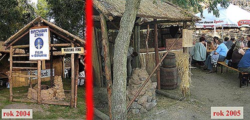 To do razu wyjaśnia dlaczego po raz pierwszy od kilku lat nie spróbowałem ani nie przywiozłem sobie z Festynu piwa. Po prostu piwa nie było. Natomiast wszędzie gdzie tylko można stały parasole Żywca. Cóż - zapłacili to mają. Pomimo, że wśród sponsorów imprezy cały czas widnieje logo browaru w Żninie - jego stoiska na festynie nie było. Co więcej - wiata, którą kilka lat temu wybudował sobie żniński browar i pod którą prezentował warzenie piwa, została zawłaszczona przez Żywiec. Tylko obsługa była albo nieobecna, albo jeszcze mniej rozmowana i dużo mniej kompetentna niż rok wcześniej.