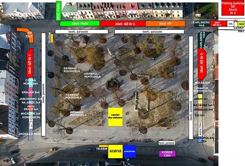 Analizując pod lupą mapkę widzę, że Grupa Żywiec nie byłaby sobą gdyby nie wykupili miejsca pod trzy namioty aby dosłownie otoczyć scenę. Takie bagatyje ruskije, tylko że z Goł'łandi, którzy muszą mieć dużo i wszystko i wszędzie...