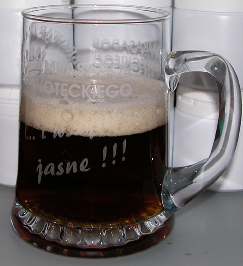 Polotmave zostało dzisiaj nalane do kufla. Zrobiłem fotkę, na której wygląda na ciemniejsze, niż to jest w rzeczywistości. Trochę mało tego piwa, bo butelka miała 0,33 l, a naczynie 0,5 l. Piana na razie jeszcze lichawa, no i ma dziury, jak w szwajcarskim serze...