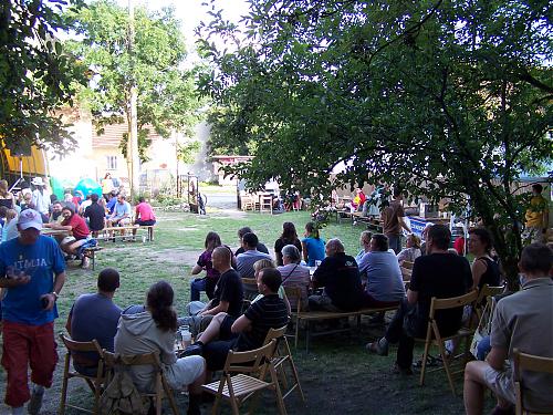 , na którego bardzo liczył jeden z członków naszej eskapady.Impreza o bardzo sielankowym nastroju, z uczestnictwem lokalnej społeczności i co najwyżej średnio znanych zespołów muzycznych. Wejściówki płatne 29Kc od osoby - dostaliśmy numerki 69-72, więc biorąc pod uwagę wszelkie wejścia "po znajomości", na terenie było mniej więcej sto osób.
