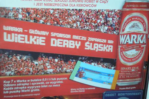 Promocja zdrapkowa do wygrania bilety na derby ślaska lub puszka piwa.