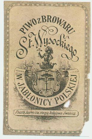 Etykieta z browaru Wysockiego w Jabłonicy Polskiej, przez większość kolekcjonerów uważana jest za najstarszą znaną etykietę, jak napisał Sebastian na łamach Pivarii browar ten działał w latach 1890-1902, można przyjąć rok założenia browaru jako okres pochodzenia tej etykiety, czyli 1890r.Czymże jesteś śmierci ! Gdzie jest twój oścień?