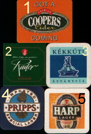 Przy pierwszej podstawce chciałbym dowiedzieć się czy jest to australijski coopers (i czy podstawka również jest z australi),nr 2 i 3 to wogóle nie mam pojęci co to jest i prosił bym o zidentyfikowanie tych podstawek.(nr 2 ma pusty rewers,a nr 3 rewers taki sam jak awers). Nr 4 to na pewno szwedzki browar Pripps, ale nie wiem dokładnie z jakiego państwa jest ta podstawka. O ostatniej podstawce wiem tylko tyle, że piwo Harp na pewno ma coś wspólnego z Guinnesem, ale niestety nic więcej. Z góry dzięki za pomoc