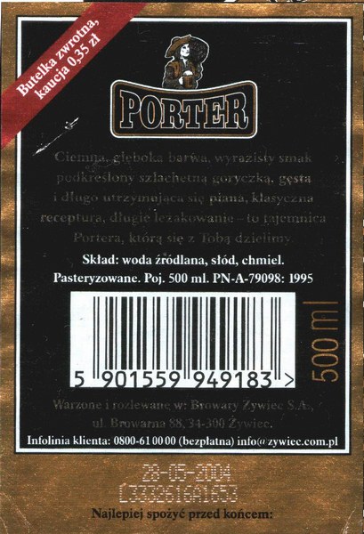 1. Porter (kiedyś EB Porter) warzony jest na pewno w Żywcu, o czym mówi napis na etykiecie.