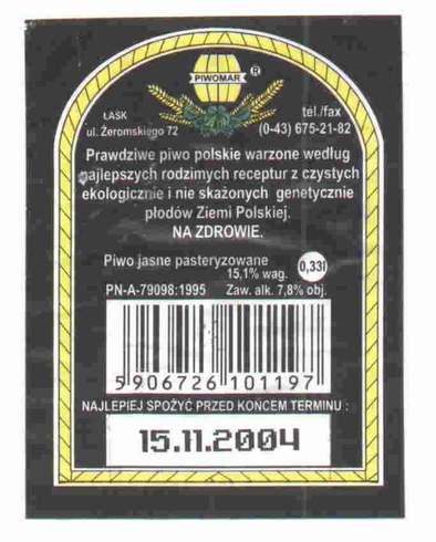 Na etykiecie widnieje tylko i wyłącznie Piwomar Łask???