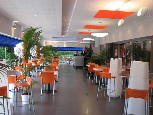 W miejscowości Schoelcher kilka kilometrów od stolicy znajduje się browar restauracyjny w czymś co przypomina centrum konferencyjne. Mapka na beerme przekłamuje, bo sytuuje browar jeszcze w stolicy, co nie jest prawdą. Zmyliło mnie to i dotarłem tam właściwie przez przypadek, dzięki bezinteresownej pomocy pracownika zieleni przydrożnej. Browar chyba dość często przechodzi zmiany własnościowe. Według beerme funkcjonuje jako element sieciówki "Les Trois Brasseurs", ale potem nazywał się jeszcze "Cap Salomon", a obecnie od 2 miesięcy zwie się "Le Deck" aczkolwiek wybór piw jest identyczny jaki był w "Cap Salomon" (dostałem archiwalne menu). Wygląd browaru przypomina mi krzyzówkę salonu samochodowego z nowoczesna knajpą- szkło metal i kolorowy plastik. W ofercie 4 gatunki piwa, z czego dostępne były 3 - Blonde, Ambree i Blanche. Niedostępne było Brune, noszące nazwę "Le Scotch". Ceny piwa w browarze nizsze niż piw przemysłowych w knajpach: Blonde 4,20 Euro za 0,5 i 3 Euro za 0,33, pozostałe odpowiednio 4,70 i 3,30 Euro. Wszystkie piwa całkiem smaczne.Ponizej 2 fotki browaru. Zdjęcia z zewnątrz nie wykonałem z uwagi na ulewę.