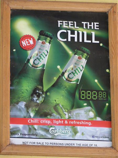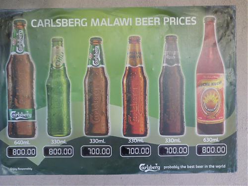 Właściwie nie widuje się reklam piwa, tylko czasem szyld baru zawiera elementy etykiety piwa Zambezi, Golden Pilsenera lub Castle.