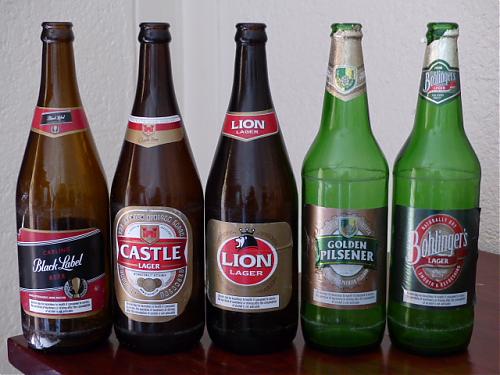 Co ciekawe Zambezi, Golden Pilsener, Bohlinger’s występują tylko w zielonych butelkach o pojemności 340 ml i 660 ml, natomiast Eagle, Lion, Castle i Carling Black Label występują jedynie w butelkach brązowych o pojemności 340 lub 375 ml i 750 ml. Oprócz butelek są też puszki, na które jednak nie zwracałem większej uwagi.