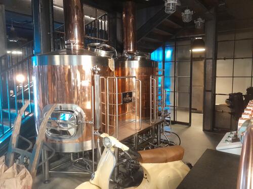 Budynek browaru z zewnątrz powściągliwy kryje w swoim wnętrzu to, czego brakowało tego typu nowym obiektom, a więc oryginalności.