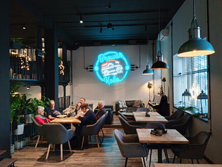 Istotnym elementem wystroju lokalu są stare plakaty reklamowe i wielki świecący neon Browaru Koło.
