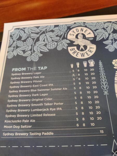 Brewpub czy też raczej browar restauracyjny, znajdujący się o kilka minut na piechotę od ichniejszego dworca centralnego. Ruch duży, piwa smaczne, ceny jak na Sydney zachęcające (przynajmniej jeśli chodzi o piwa - jedzenia nie próbowałem).