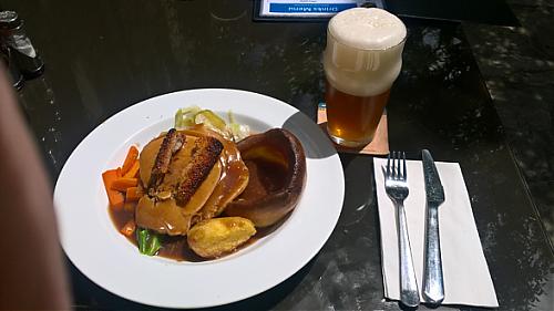 W niedziele obowiązuje specjalne menu - tylko jedno danie główne. W niedzielę 21 maja miałem okazję delektować się najlepszą pieczenią wieprzową jaką jadłem w życiu, która całkiem nieźle komponowała się z piwem ESB.