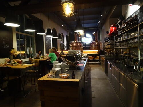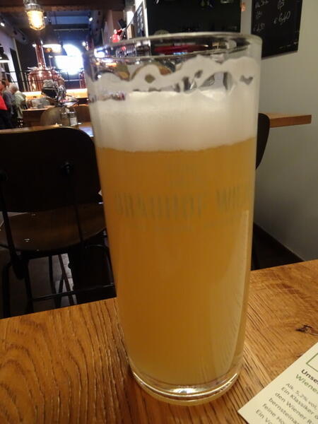 Wielka, stylowa, 5-piętrowa kamienica o pięknie zdobionej białej elewacji, znajduje się w dzielnicy Füfhaus w odległości 600 m od dworca Wien Westbahnhof. Mieści się tu 4-gwiazdkowy hotel, a od 2019 roku także browar. Z ulicy można wejść przez recepcję albo kolejnymi drzwiami wprost do części barowej. Można to posiedzieć przy kilkunastu 4-6 osobowych wysokich stołach z jasnego drewna, jak również przy długim blacie obok błyszczącej miedzią warzelni, znajdującej się po lewej od baru. Wystrój to nowoczesna prostota ale o piwnym klimacie. Biel ścian, czerń okiennych wnęk, baru, półek na szkło i tablic z wypisanymi kredą piwami. Z wysokiego stropu z grubymi rurami i stalowymi belkami, zwisają nad stoły na długich kablach czarne punktowe lampy stylizowane na przemysłowe. Zmieści się tu około 40 gości, jednak można było się spodziewać, że w tak wielkiej kamienicy to nie wszystko. Zostawiamy bar po lewej i idziemy szerokim korytarzem na wprost od wejścia, lekko do góry. Po prawej znajduje się przeszklona chłodnia pełna kegów i 2 tanki wyszynkowe po 10 hl, dalej długa lodówka z piwami butelkowymi i puszkowymi z całego świata (Polskę reprezentował Browar Stu Mostów).