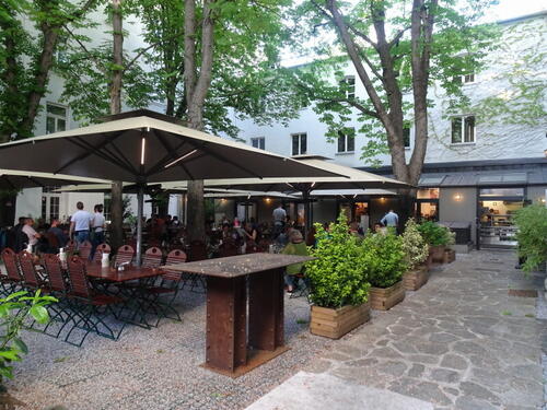 - Hausbier, 12,7°, 5,6%. Cena j.w. Zapytany kelner powiedział, że to märzen. A było idealnie klarowne, ciemnozłote. Spróbowałem łyka od kumpla i rzeczywiście mocną słodową słodyczą smakowo odpowiadało marcowemu.
