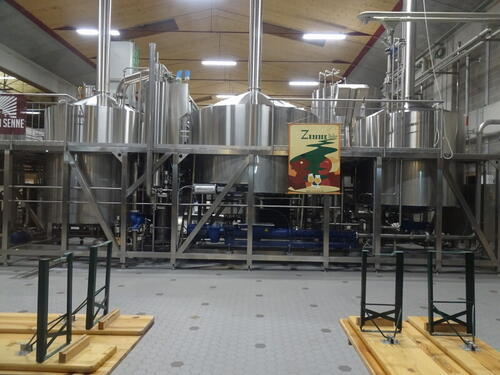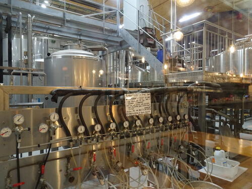 Jak wspomniałem, cześć produkcyjna jest w większości dobrze widoczna przez szyby. Czteronaczyniowa warzelnia ma wybicie co najmniej 30 hl (jak nie więcej), tankofermentory są różnej wielkości ale na oko można sądzić, że te największe mogą mieć 100 hl.