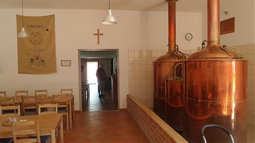 Gotowe jest wnętrze, hospoda działa od kwietnia i składa się z dwóch sal. Zaraz po wejściu z podwórka jest mniejsza z ceglanym barem (4 nalewaki) mieszcząca się w zasadniczym budynku, dalej większa w nowej przybudówce. Wystrój prosty - białe ściany ozdobione dyplomami za nagrodzone piwa, tablice ze schematem browaru, rodzajami chmieli i słodów. Stoły i krzesła z jasnego drewna. W drugiej sali umieszczono piękną, miedzianą warzelnię (550 l). Otwarta spilka i tanki leżakowe (10x1000 l), zajmują pomieszczenia za barem w zasadniczym budynku. Jest tam także urządzenie uzdatniające wodę gdyż ta ze studni jest zbyt twarda. Całość urządzeń dostarczyła firma Pacovské strojírny a ich moc produkcyjna to 1000 hl rocznie.