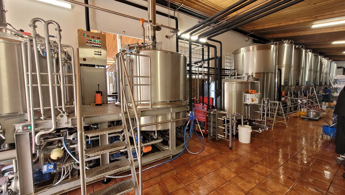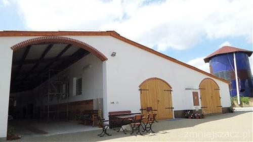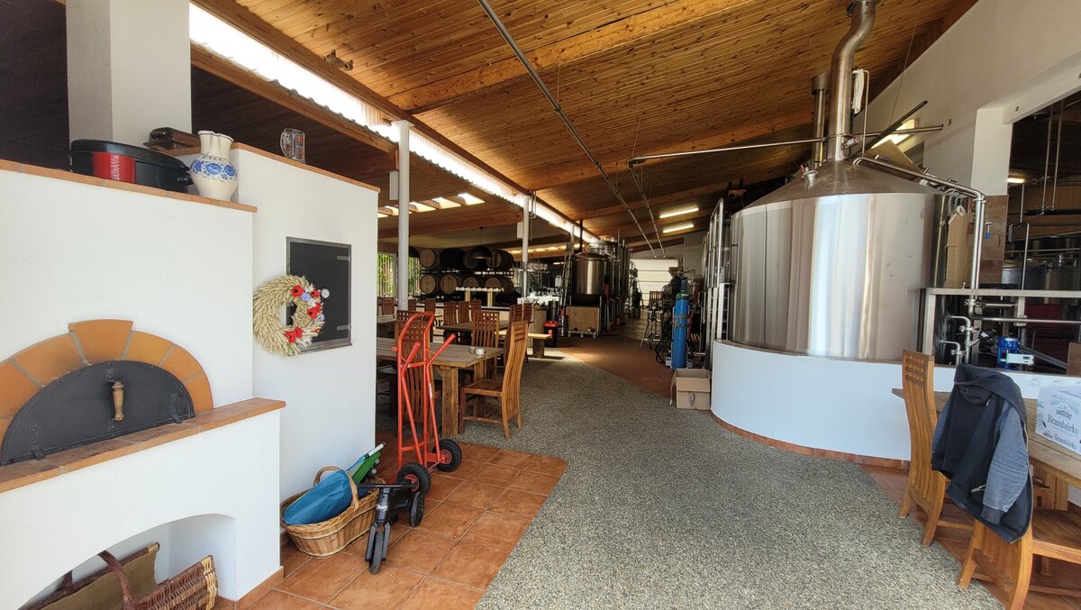 . Za częścią ze stołami, w głębi dużej sali, można zobaczyć kolekcję starych narzędzi rolniczych, także drewniane konne wozy. Jednak jest tu także miejsce na funkcje związane z produkcją piwa - pod przeciwległą ścianą umieszczono agregaty cieplne, myjki/napełniarki kegów, śrutownik wyposażony w podajnik łańcuchowo tależykowy przesyłający ześrutowany słód do warzelni za ścianą. Jako że słód dostarczany jest w wielkich worach o pojemności 1 t, nad śrutownikiem funkcjonuje podnośnik z blokiem umożliwiający ich podniesienie i w odpowiednich dawkach zsypywanie słodu.