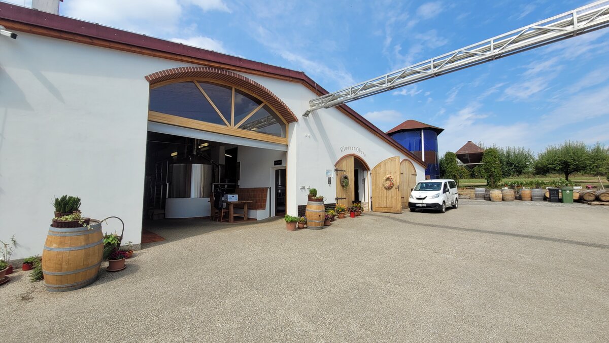 . Z autobusu jest do browaru jakieś 200 m, przechodzimy koło stawu oraz przez niewielką dolinkę z dwoma potokami i już za nią na wzniesieniu widać białe podłużne, parterowe budynki ze spadzistymi dachami wśród drzew i wypielęgnowanych trawników. Podchodzimy od podwórza i od razu widać, że jesteśmy u celu - otwarte bramy budynku zapraszają.