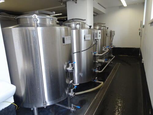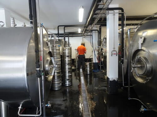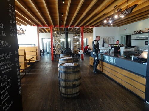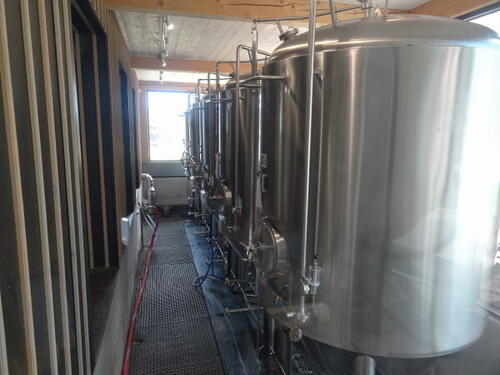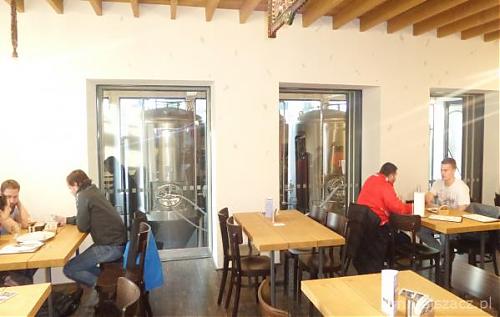 . A 15.06.2022 po raz pierwszy miałem okazję być w tutejszym browarze. Widać, że są otwarci na turystów bo wielkie napisy od strony granicy na przybudówce pełniącej rolę magazynu browaru, w trzech językach (polski, angielski i niemiecki) informują o jego istnieniu. Od strony ulicy obok wejścia, w przeszklonej suterenie umieszczono tankofermentory (5x30 hl). Można je podziwiać siedząc na zewnątrz przy ławach ustawionych na chodniku lub z wnętrza z sali po prawej od wejścia. Na każdym z napełnionych zbiorników zawieszane są drukowane ceduły z dokładnym opisem piwa jakie się w nim znajduje. Ale resztę browaru (niedostępną dla gości) umieszczono zupełnie z tyłu budynku, a ze względu na stromiznę terenu sporo niżej. 3-naczyniowa warzelnia (z whirpoolem) ma wybicie 30 hl, a oprócz zbiorników wody lodowej i gorącej oraz stacji CIP, znajdują się tu też poziome tanki leżakowe 8x60 hl. Sprzęt pochodzi z firmy Pacovské strojírny.