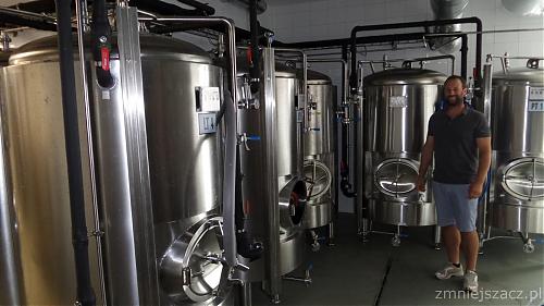 Zagadnięty przy barze, akurat nalewający piwa młody człowiek okazał się bardzo miłym piwowaro/barmanem (na zdjęciu przy tankach).