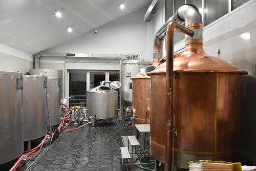 Z sali mamy wgląd na warzelnię i resztę instalacji, a tanki można podejrzeć przez duży otwór w podłodze przykryty pleksą. Bardzo ciekawie to wygląda.