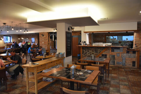 Sala całkiem spora, a obsługa składała się tylko z dwojga kelnerów i barmana, który to wieczorem bardzo mocno wspierał swoją koleżankę i kolegę na sali. Nie zmieniało to faktu, że nieraz na piwo i 15 minut musieliśmy poczekać. Wystrój sali wraz z wyeksponowaną w kącie warzelnią przypadł nam do gustu, no może oświetlenie powinno być bardziej subtelne.