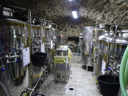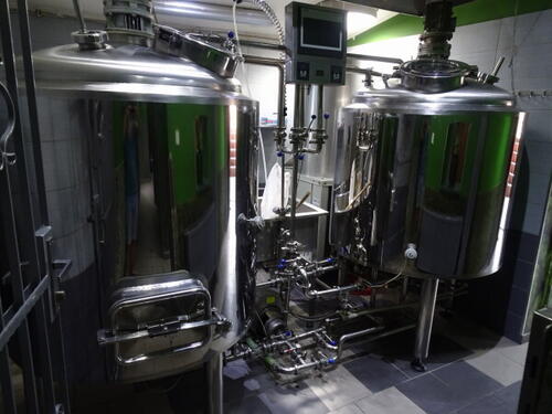 Stojąca za kratą, jak przypuszczam 500 l. ( kelnerka nie wiedziała) warzelnia to najnowszy zakup do browaru. Stare 380 litrowe kotły warzelne zostały przerobione na tanki i stoją w piwnicy obok reszty bodajże 10 tanków. Całość instalacji została zakupiona w Chinach. Wycieczkę do browaru Millénium uznaję za udana, fajny lokal, oraz całkiem przyzwoite piwa tam się warzy.