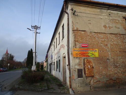 W tymże właśnie ceglano-pustakowym budynku mieści się browar, a jedyna rzecz jaka nas o tym informuje to malutka karteczka z napisem Hostinský pivovar Chors, która to została przyklejona do równie mało urokliwych drzwi bez klamki. Ponieważ internet na temat browaru praktycznie nic nie wie, więc nigdzie nie znalazłem informacji z podanym do niego numerem telefonu, lub mailem. Miałem nadzieję, że właśnie na tej karteczce jakiś kontakt będzie podany. Niestety go nie było. Jednak na odchodne zastukałem w drzwi i o dziwo zostały one otwarte