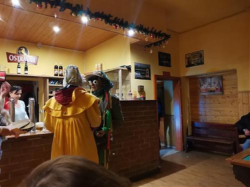 Lokal odwiedziliśmy 22.02 w tzw. ostatki i nawet nie wiedziałem, że Czesi tak wesoło i barwnie obchodzą ten dzień. Tuż po godzinie 17 w asyście Ochotniczej Straży Pożarnej ulicami przeszedł barwny korowód przebierańców ( zdjęcia poniżej). Oczywiście część z nich odwiedziła hostinec, a część z nich pozostała w nim do wieczora. Dzięki temu w lokalu zrobiło się jeszcze bardziej wesoło i klimatycznie. Do dobrej zabawy potrzeba dobrego jadła i napitku, a tego tam nie brakowało, więc gwar i zabawa trwała do późnych godzin.