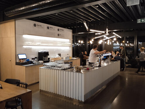 Restauracja składa się z jednej sali, przeszklonej wielkimi panoramicznymi szybami, a na środku usytuowany jest wielki bar.