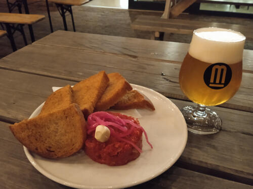 Ja wybrałem tatara za 165 kč (na zdjęciu z piwem IPA).