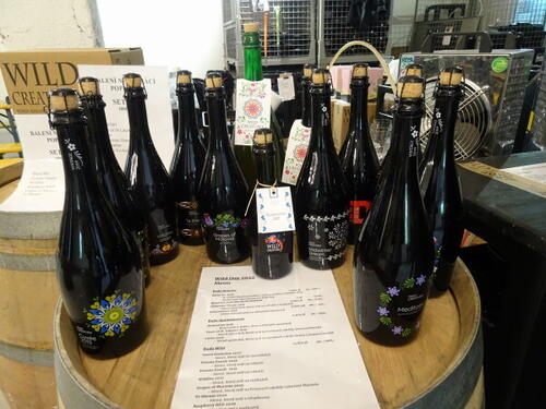 - Blend 001 - przygotowany specjalnie na Wild Day z piwa z 2018 roku (ponad 50%) i dwóch z 2019 dojrzewających z winogronami szczepów Svatovavřinecké i Merlot, 55 kč/0,1 l