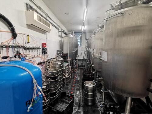Dzięki uprzejmości pomocnika sladka mieliśmy okazję zobaczyć browar również od środka. W jego skład wchodzi 500 litrowa warna, oraz 9 1000 litrowych tanków.
