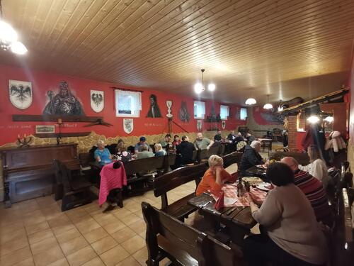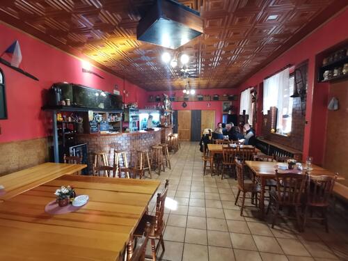 Na parterze znajduje się restauracja, a w niej dwie duże sale oddzielone ścianą i co ciekawe w obu z nich jest przechodni bar. W pierwszej sali nad barem góruje ogromne, ale troszkę zaniedbane akwarium. Druga sala jest większa i bardziej ,klimatyczna,. Na ścianach wymalowano herby, popiersia znanych patriotów. itp gadżety