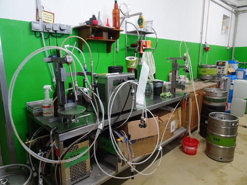 A chyba by się przydało bo w dniu naszej wizyty 2.05.2023 były dostępne tylko 2 piwa, a tanki pełne. Pan sládek przyznał, że mógłby sprzedawać więcej, jednak będąc zarazem właścicielem i jedynym pracownikiem, po prostu nie jest w stanie zwiększyć produkcji. Dlatego skupia się na dwóch podstawowych piwach, a tylko od święta warzy inne. W czasie naszej wizyty naocznie przekonaliśmy się, że powodzenie mają bardzo duże, co kilka minut rozmowę przerywał dzwonek do drzwi a klienci wymieniali kegi na pełne lub odbierali piwa zamówione w butelkach.